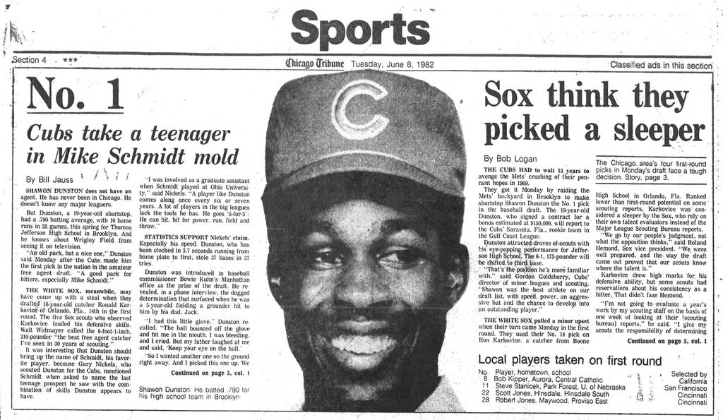 The Cubs have had only one No. 1 pick, which they used on high schooler Shawon Dunston in 1982. Dunston went on to play 18 seasons, including 12 with the Cubs, and was twice an All-Star shortstop.