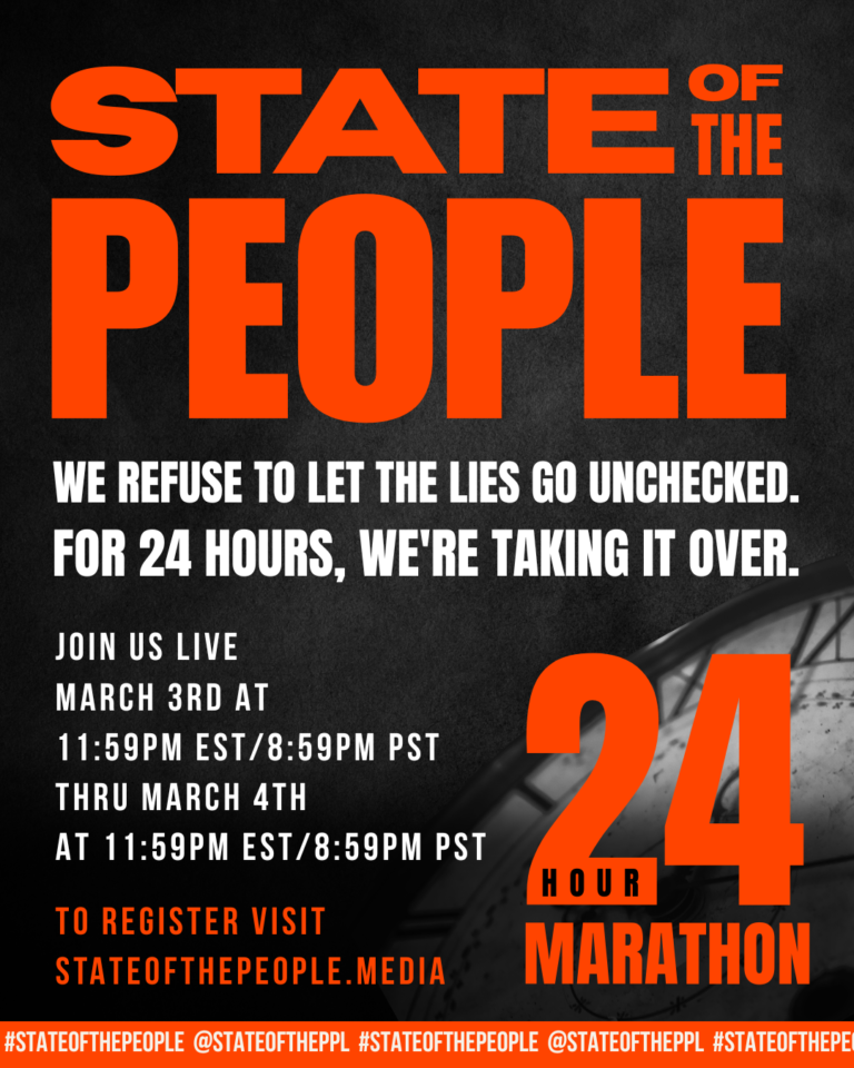 The public is invited to register at StateOfThePeople.media, and to watch there, as well, beginning tonight, March 3rd, 2025 at 11:59 PM ET to March 4th, 2025 at 11:59 PM ET
