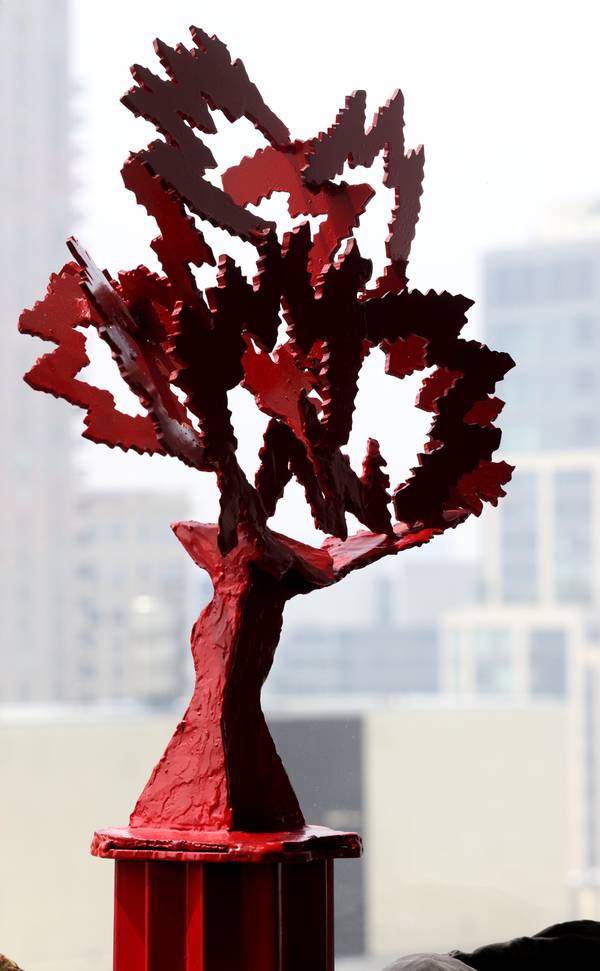 A replica of the sculpture titled Red Tree Rising by sculptor Ruth Migdal, 90, is shown in her Chicago apartment on June 28, 2023. (Antonio Perez/Chicago Tribune)
