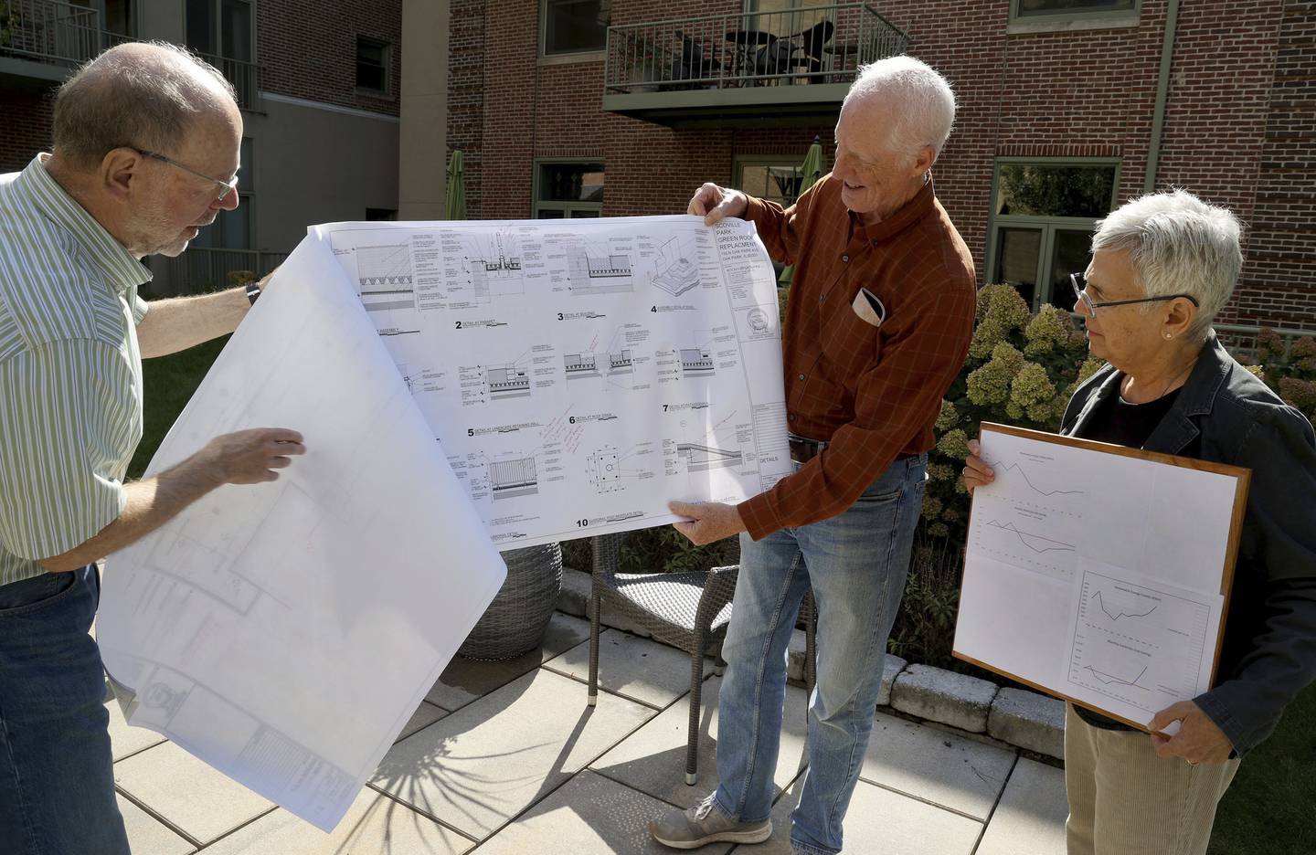 Brandishing charts of their electricity costs during a recent interview, Dickerson and his fellow members of the building’s green committee, Elaine Johnson and Art Spooner, said they’re all paying less with community solar, as is their 28-unit building, which is saving about $40 a month on electricity for its common spaces.
