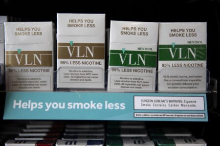 New cigarettes VLN King and VLN Menthol King are for sale, April 11, 2022, at the Circle K convenience store in Wheaton. The cigarette is the first to be authorized by the FDA to be marketed as product designed to help smokers cut back. (Erin Hooley / Chicago Tribune)