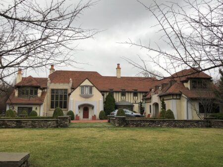 The mansion has eight full bathrooms, three half bathrooms, five fireplaces, walnut plank flooring, ceramic stone floors with radiant heat, Lutron lighting, Waterworks tile in the bathrooms, a wine storage room, a golf simulator room, an elevator, an indoor basketball court, a steam shower, locker rooms and a massage room. Outside on the 1.45-acre property are a 60-foot outdoor lap pool, a gazebo and a brick driveway with parking for 12 cars.