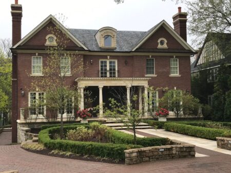The mansion has six full bathrooms, two half bathrooms, four fireplaces, a library, a pub, an elevator, a family room with a coffered ceiling and a fireplace with marble surround, and a kitchen with marble countertops, custom cabinets and Sub-Zero, Wolf and Miele appliances. The mansion’s lower level has a theater room, wine cellar, second kitchen, exercise room and office, while the 0.54-acre property has two pergolas, a new basketball court, an outdoor kitchen with a barbecue and a fire pit.