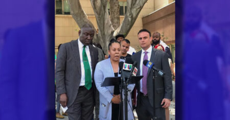 Nicole Castro hugging Janet Ramirez as the Attorneys Ben Crump and Adam Slater take questions. LOS ANGELES, Cal. – Renowned civil rights and personal injury attorney…
