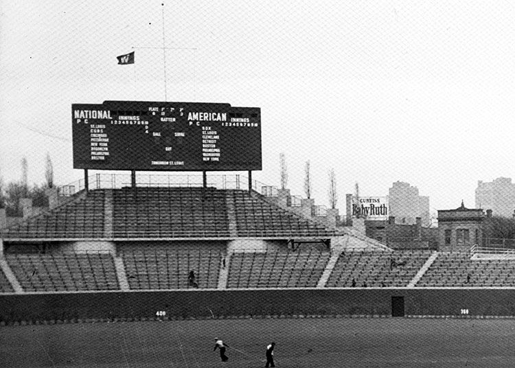 Philip K. Wrigley — a shy, diminuitive leader who refused to add lights to Wrigley Field — assumed control of the team and ballpark after his father’s death in 1932. In 1937, P.K. Wrigley decided to make some adjustments to Wrigley Field to create a better experience for fans — adding new bleachers, the iconic center-field scoreboard, a flagpole and ivy to climb up the outfield walls. He put a young Bill Veeck Jr. in charge of the beautification plan, who detailed this process in his 1962 autobiography: “There was only one promotional gimmick I ever got away with. Mr. Wrigley permitted me to install lights on top of the flagpole to let homeward-bound Elevated passengers know whether we had won or lost that day. The flagpole was on top of the new scoreboard, and at its summit I put a crossbar with a green light on one side and a red light on the other. The green light told the El passengers we had won, the red that we had lost.”