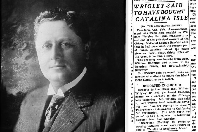 The chewing-gum magnate purchases Santa Catalina Island, 26 miles off the coast of Southern California, for $3 million, or more than $41 million in today’s dollars. It was sold by the Banning family, who built a shipping empire in California. “Part of the purchased package was a company that the previous owners had founded in 1884, Wilmington Transportation Co. … all of Wilmington’s vessels flew the white W on a dark blue background,” said Michele Bestudik, historian and film liaison for the Santa Catalina Island Co. Wilmington is a neighborhood along the harbor in Los Angeles.