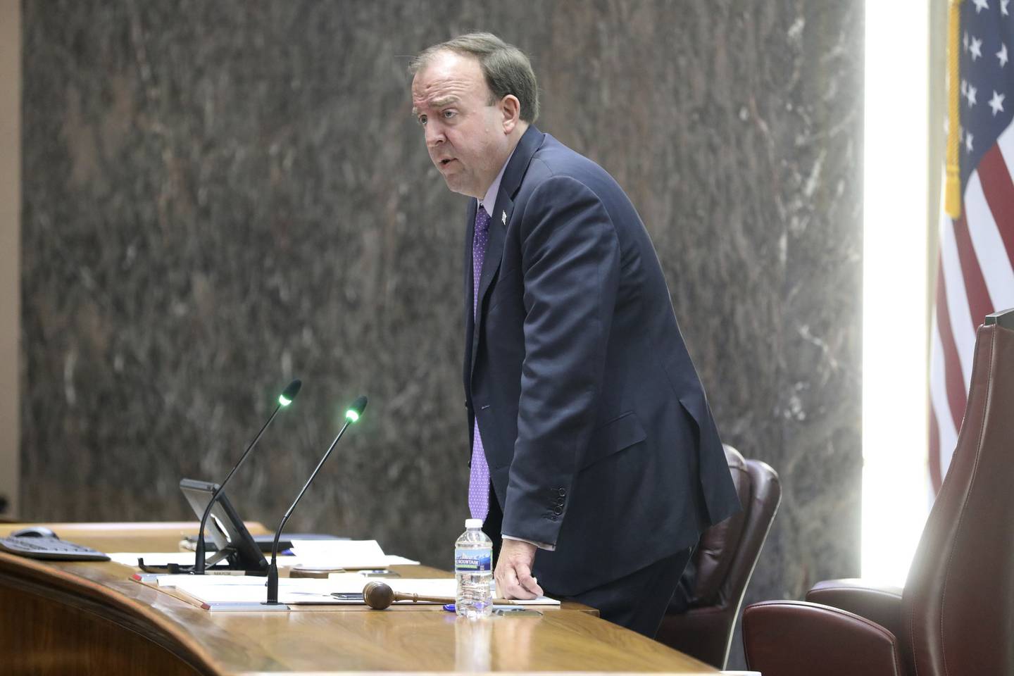 Ald. Brendan Reilly chairs a special City Council meeting about crime on May 25, 2022. (Brian Cassella / Chicago Tribune)
