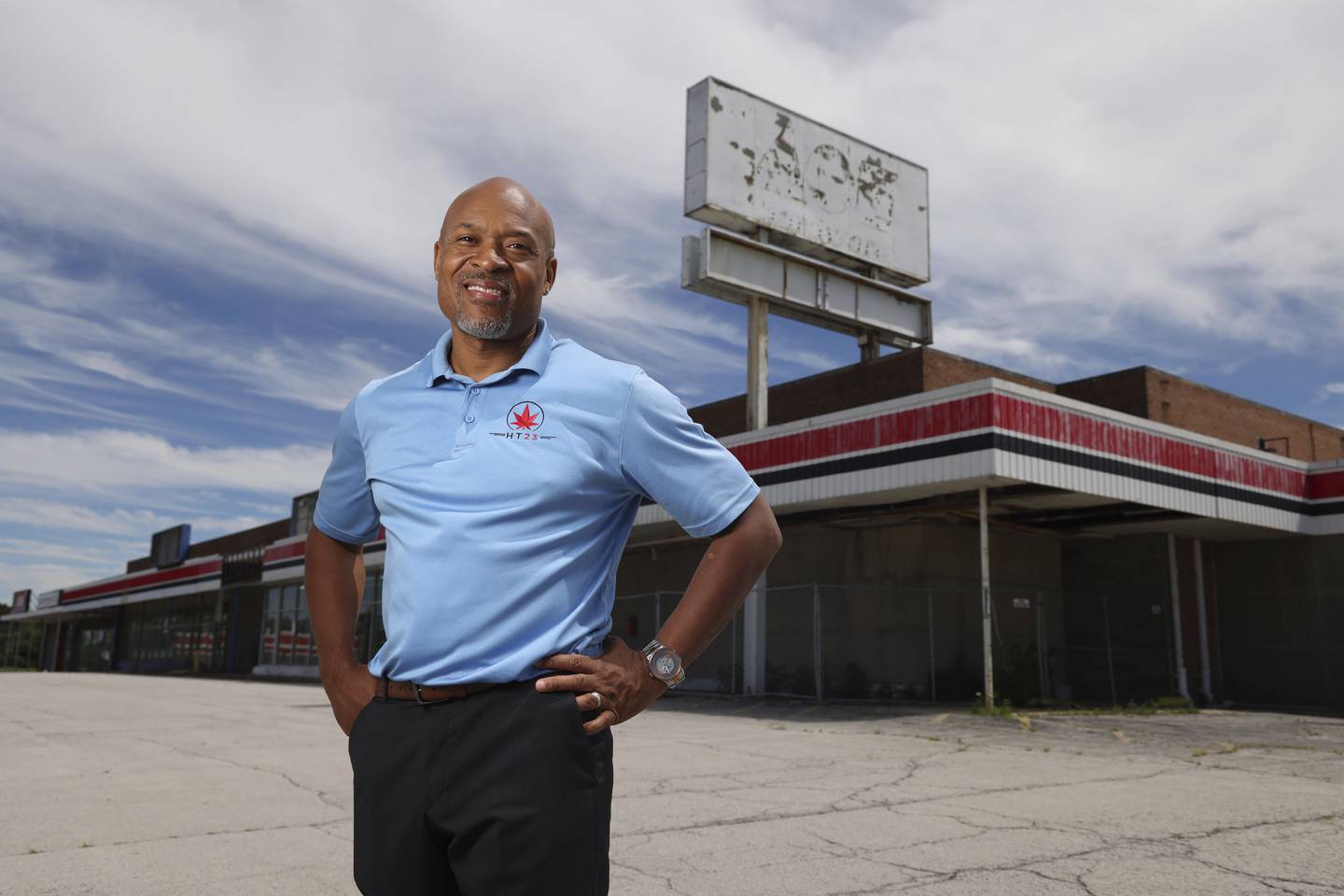 Reese Xavier Walton, of HT23 Growers, stands at the property the company bought to create a legal marijuana grow house and production facility Aug. 10, 2022. (Terrence Antonio James / Chicago Tribune)