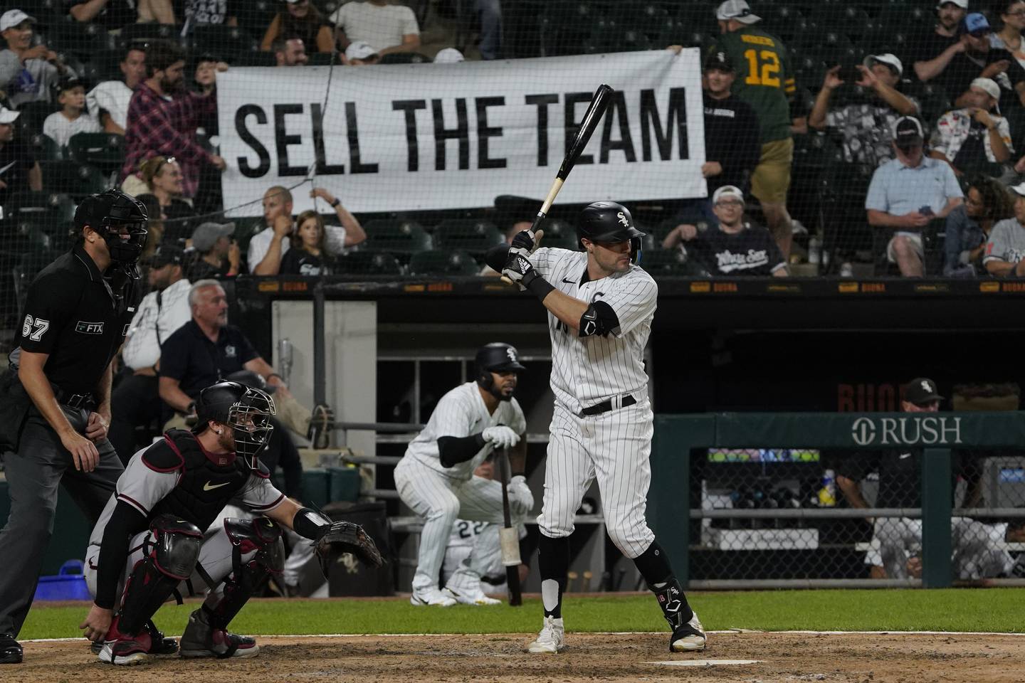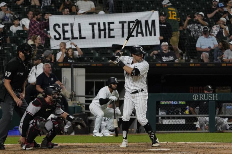 Some angry Sox fans tried to do something Saturday night, carrying a sign around Guaranteed Rate Field that read, “SELL THE TEAM.” The sign lacked specifics, so it wasn’t clear whether they want Chairman Jerry Reinsdorf to sell the Sox or the Bulls or perhaps both.