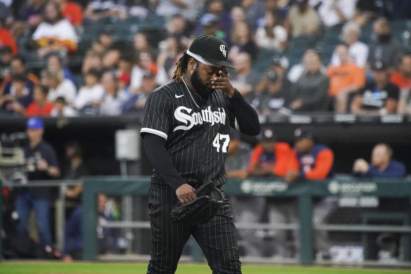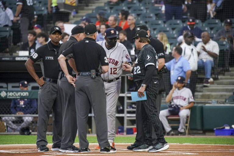 The Sox greeted the Astros by playing “Bang the Drum All Day” during the introduction of the Houston lineup, a shot at their sign-stealing past. The Astros responded by hitting Sox starter Johnny Cueto hard in a two-run first inning, aided by a Josh Harrison error.