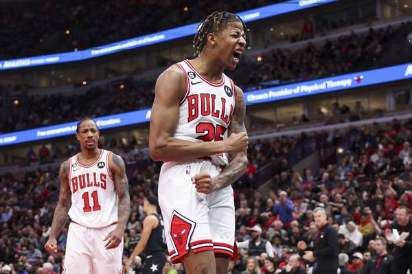 Bulls guard Dalen Terry yells during the fourth quarter against the Magic on Feb. 13, 2023, at the United Center. (Armando L. Sanchez / Chicago Tribune)