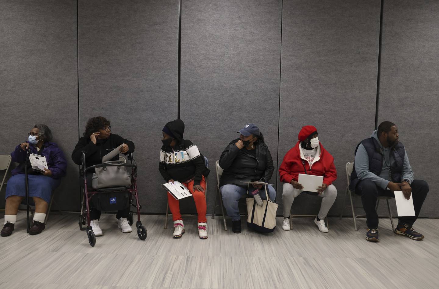 Chicago residents wait to vote early at the South Side YMCA on Nov. 7, 2022. (Michael Blackshire / Chicago Tribune)