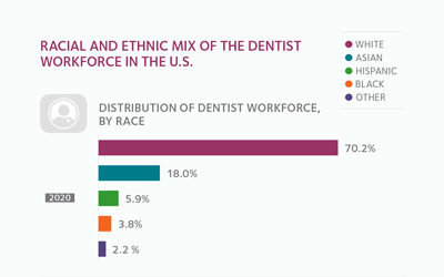 Data from the American Dental Association’s (ADA) Health Policy Institute shows there are 8,674 dentists registered in Illinois, more than 2,000 of them with practices in Chicago–few of which accept public insurance. More than 79 percent of all U.S. dentists identify as white; 11.4 percent are Asians; 4.2 percent are Hispanic; and only 3.4 percent are identified as African American.