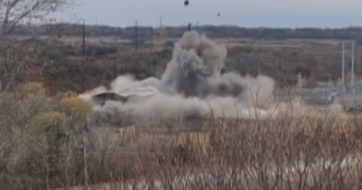 Video from onlooker Nathan Dahlager shows a flash of bright orange light and a loud crack at the base of the massive plant. With an even louder crash, two towering smokestacks toppled as the rest of the building collapsed. Black debris flew in the air as dark smoke filled the space where the structure stood just moments before. Dahlager posted the video to Twitter with a caption: “Landmark in our community reduced to dust! Really neat to watch.”