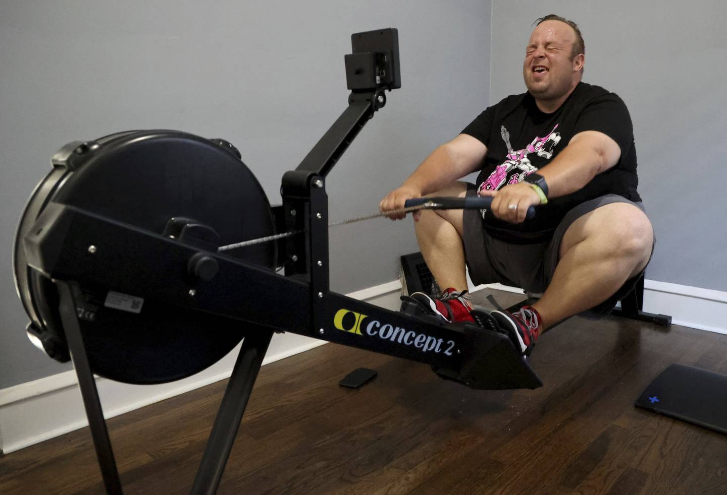 He also persevered on his rowing machine despite being so out of shape at the start that he couldn’t strap into the foot rests. Today, he routinely puts in 30-minute sessions.