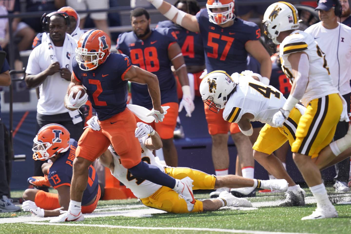 Illinois: Running back Chase Brown. After topping the 1,000-yard mark last season, Brown opened 2022 with a bang. His 151 yards rushing rank fourth in the nation and his three touchdowns — two rushing, one receiving — are tied for the national lead. Friday’s game should give everyone a better glimpse of what Brown could do for the Illini.