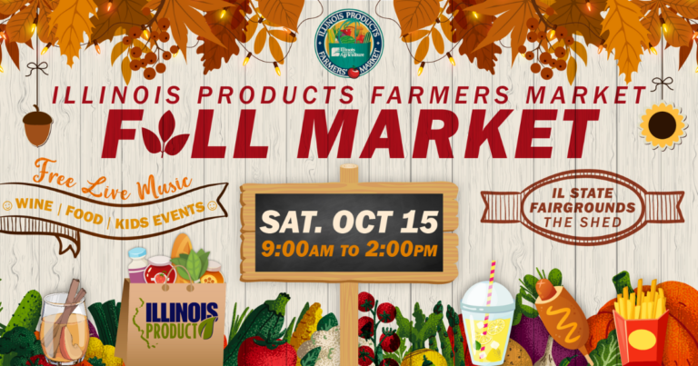 The Illinois Department of Agriculture (IDOA) will host the first Illinois Products Fall Farmers’ Market. The fall market will be Saturday, October 15 from 9 a.m. to 2 p.m. at “The Shed” on the Illinois State Fairgrounds.