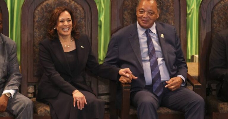 Days after the Rev. Jesse Jackson Sr. announced he was stepping down as president of the Rainbow/PUSH Coalition, Vice President Kamala Harris came to the South Side Sunday to deliver a tribute to the longtime civil rights leader while warning that conservative “extremists” sought to undermine his legacy.