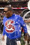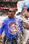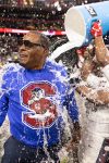 South Carolina State head football coach Chennis Berry is doused with ice water after his team defeated the Prairie View A&M Panthers in the 2025 Cricket Wireless Celebration Bowl on Saturday, December 13, 2025 at Mercedes-Benz Stadium in Atlanta, Georgia. (Photo: Itoro N. Umontuen/Black Press USA)