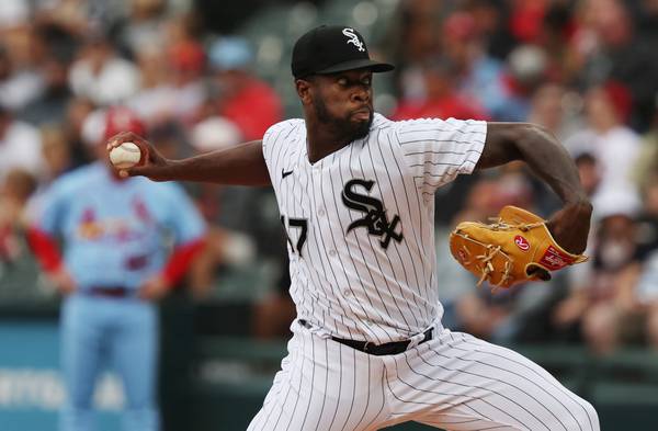 Chicago White Sox starting pitcher Touki Toussaint throws against the St. Louis Cardinals in the first inning at Guaranteed Rate Field on July 8, 2023. (John J. Kim/Chicago Tribune)