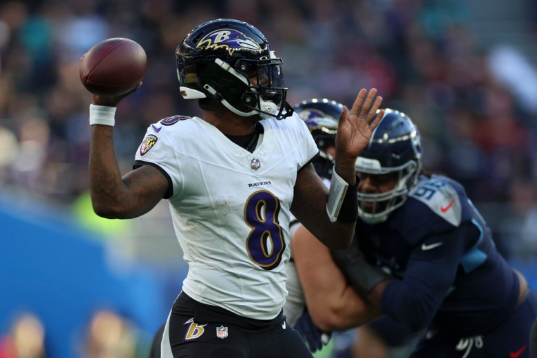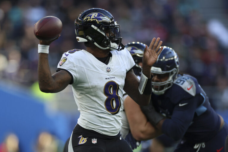 LONDON (AP) — Lamar Jackson threw a touchdown pass and Justin Tucker kicked six field goals to lead the Baltimore Ravens to a 24-16 win over the Tennessee Titans on Oct. 15 at Tottenham Hotspur Stadium in London.