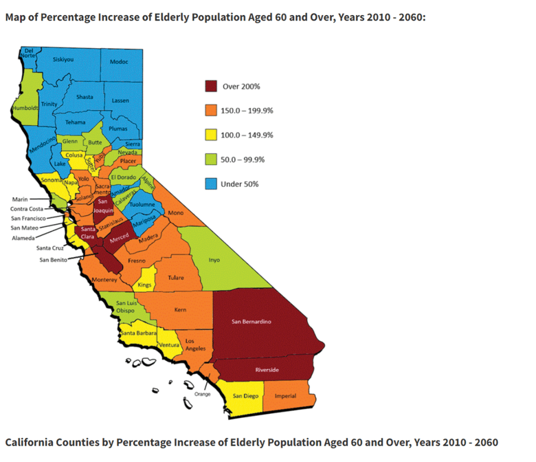 In California the number of residents 60 years and older is projected to triple in the coming years–those numbers, however, vary widely by region with the Inland Empire outpacing much of the state.