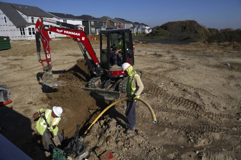 Nicor worker Mike Matlock uses a backhoe to backfill newly placed gas lines around newly constructed homes in Aurora on Nov. 2, 2022.