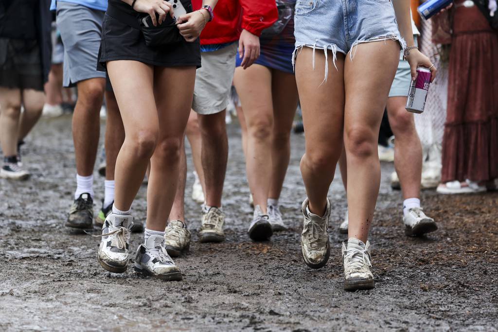 Some music fans, or make that mud fans, were going for it Sunday, especially at the high-energy Perry’s stage — dancing in the sodden earth and in some cases covered in slosh.