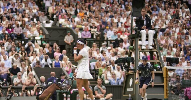 Centre Court’s retractable roof was closed for the final, shielding everyone from the wind that topped 20 mph (30 kph) outside, and that perhaps allowed Vondrousova’s smooth lefty strokes to repeatedly find the intended mark. Her shots betrayed none of the sort of tension that Jabeur’s shots did.