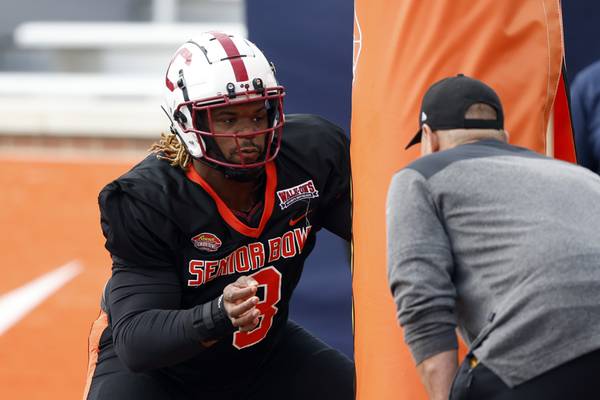 South Carolina defensive lineman Zacch Pickens during practice for the Senior Bowl on Feb. 1, 2023, in Mobile, Ala. (Butch Dill/AP)