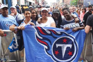 Tennessee Titans fans pose for photos during the 2019 NFL Draft in Nashville, Tennessee. (Photo: Itoro N. Umontuen)