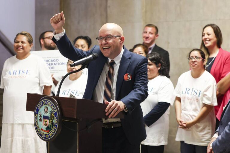 Aldermen attempting to ride a progressive tailwind in Chicago’s new City Council proposed measures Wednesday to advance worker benefits by eliminating a lower minimum wage for tipped employees and allowing workers to accrue more paid leave.