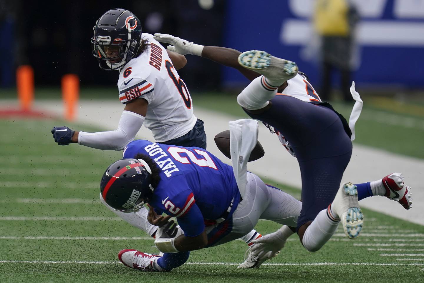 Referee Carl Cheffers ran over to shaken Giants quarterback Tyrod Taylor in the fourth quarter and pointed him off the field for evaluation immediately after Taylor was smoked in the head by Bears DB Kyler Gordon on a scramble near the sideline.