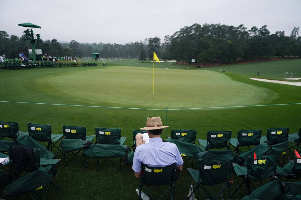 Hey Peter and wait for the start of on the first round of the Masters on the ninth green at Augusta National Golf Club on April 6, 2023. (Jae C. Hong/AP)