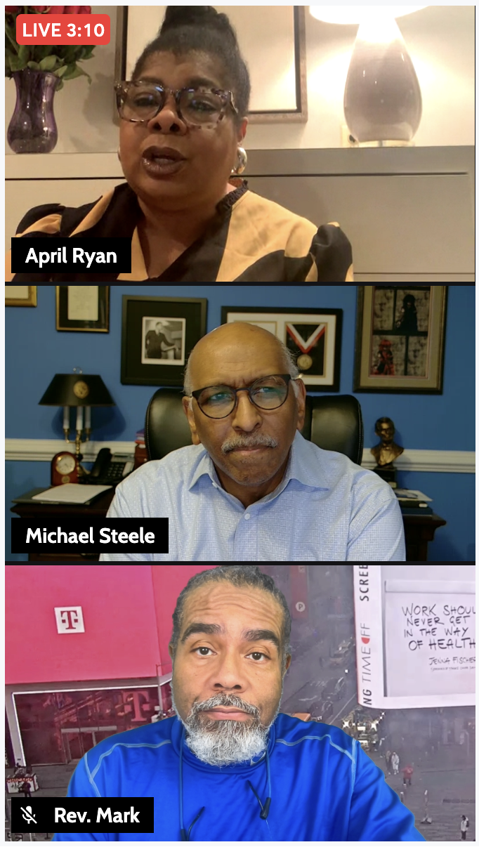 W A T C H Michael Steele CUSSIN’ Joins April Ryan and Rev. Mark Thompson LIVE on “Make It Plain”